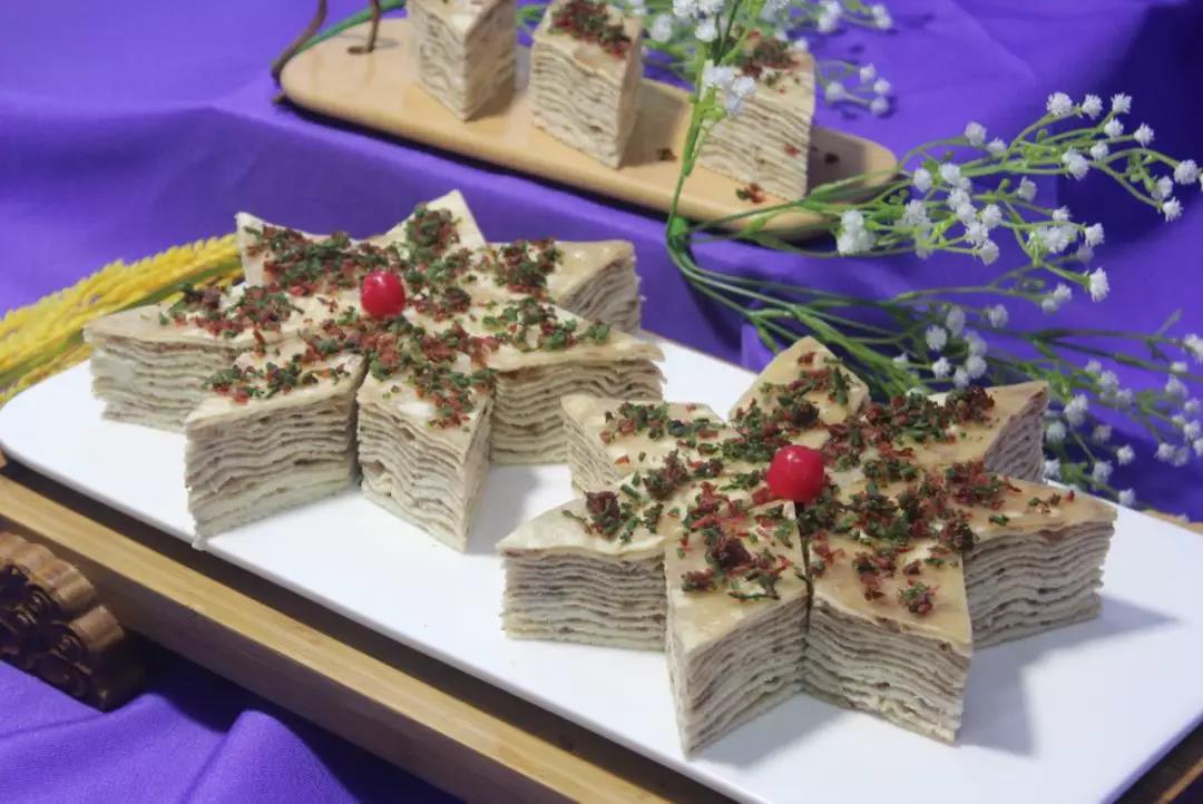 千层油糕是江苏省扬州市著名传统小吃,以清肥慢长起酵法,绵软甜嫩,层次清晰。菱形块,芙蓉色,半透明,糕分64层,层层糖油相间,糕面布以红绿丝,观之清新悦目,食之绵软嫩甜。