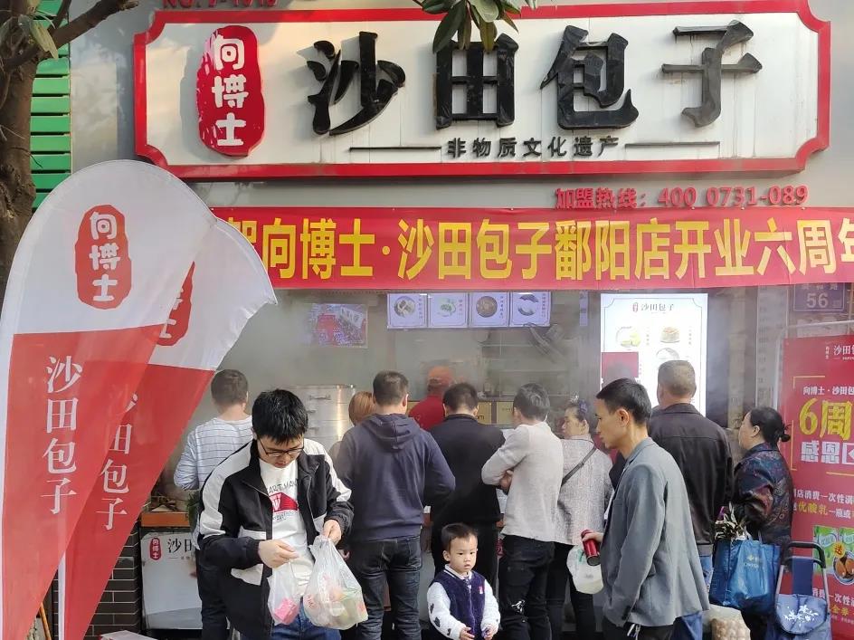 吴老板雷厉风行,在沙田包子运营人员的协助之下,迅速选址、装修、进设备,新店很快就开业了。周边居民对这个入选非物质文化的包子也充满了兴趣,沙田包子招牌一挂,就吸引了无数目光。