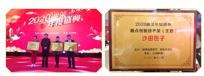 沙田包子在餐桌上获得了食客们的青睐和赞赏,在舞台上也再次斩获大奖——“湘点创新技术奖(生胚)”。