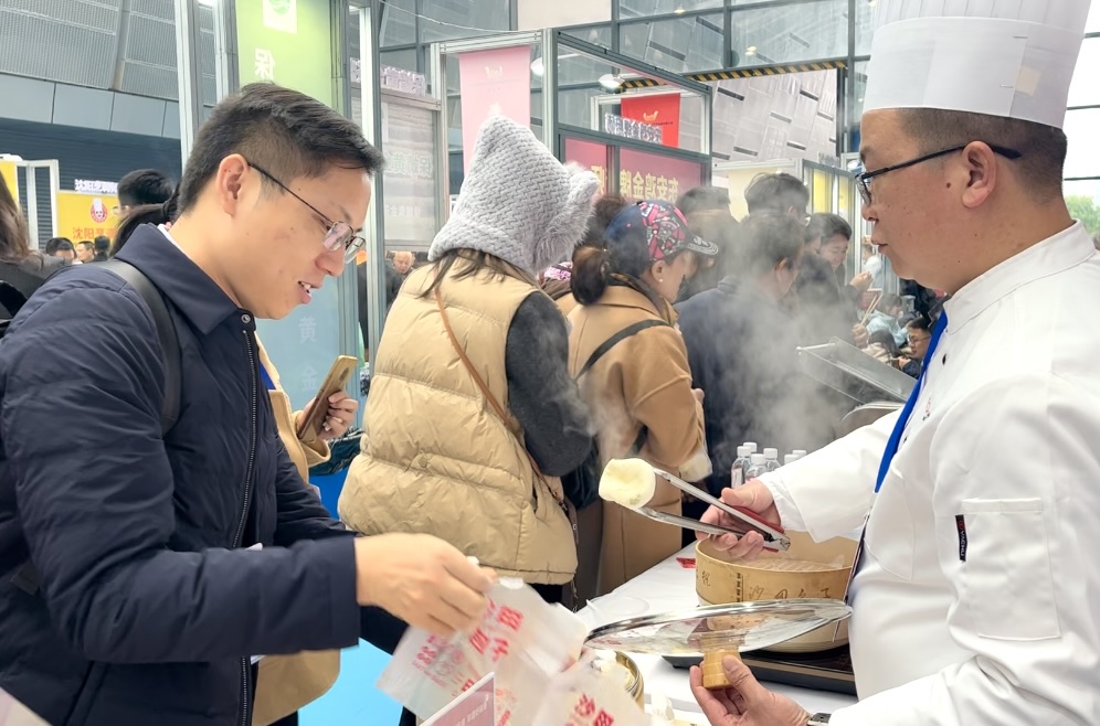 作为湘式包点代表的沙田包子亮相长沙国际会展中心,在现代流水线上,