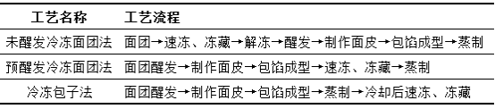 表1冷冻面团包子三种工艺流程