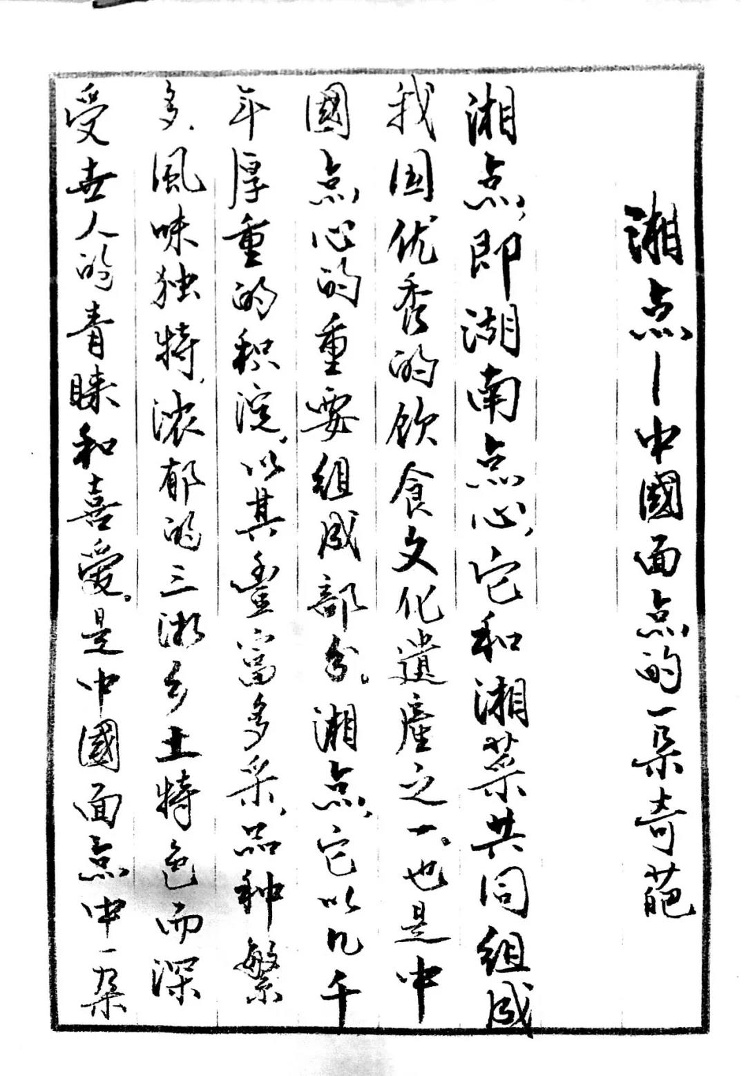 《湘点-中国面点的一朵奇葩》|湘点大师张力行书法手稿首发