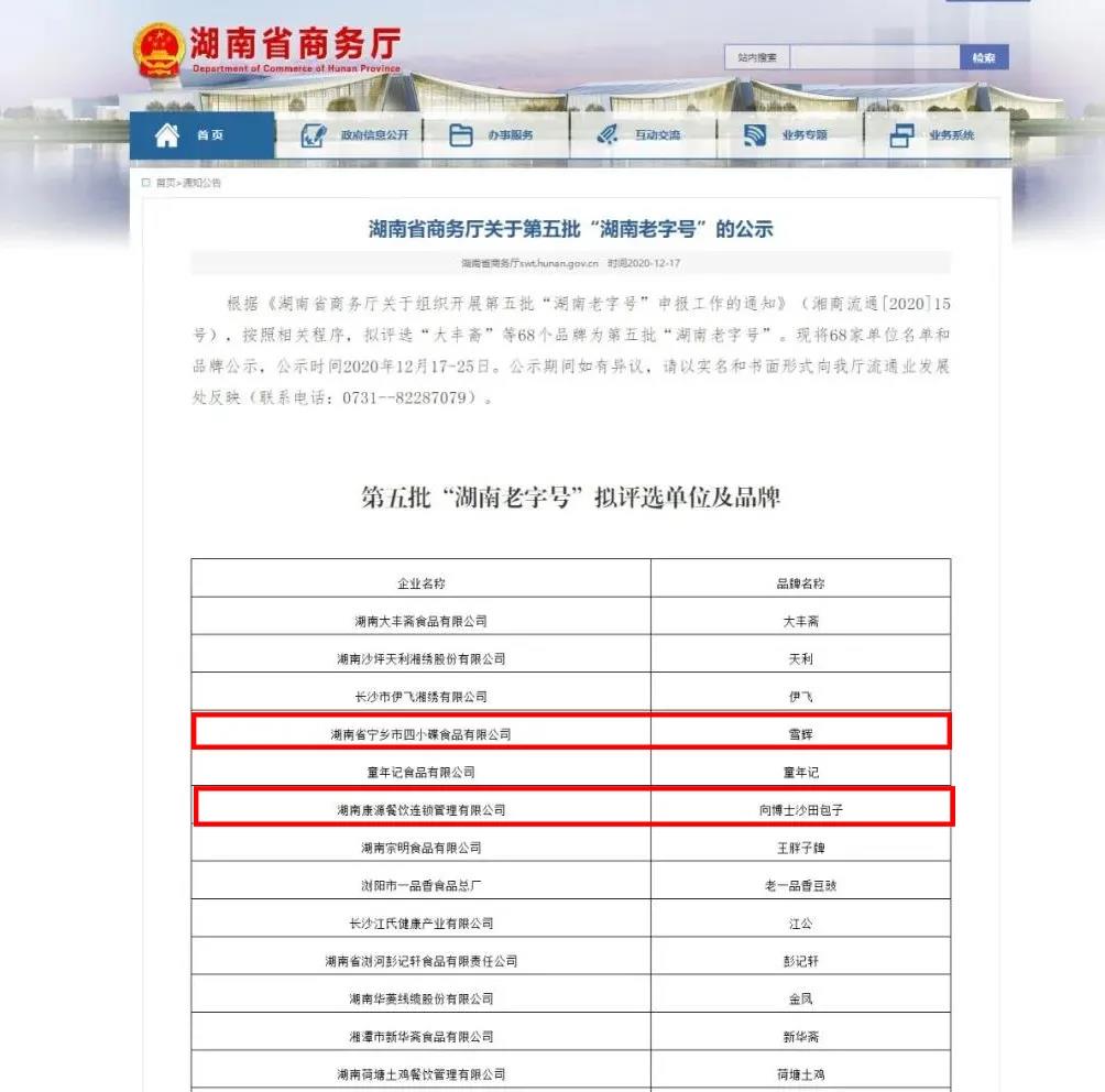 12月17日,由湖南省商务厅公布的第五批“湖南老字号”正式公示,全省的68个品牌完成了“湖南老字号”的评定。其中,宁乡的四小碟和沙田包子赫然在列。
